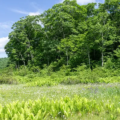 アップダウンが少ない駒止湿原でお花を愛でながらのんびりと歩きます。ワタスゲとレンゲツツジが美しい時期でブナの森も緑もとても見事です。