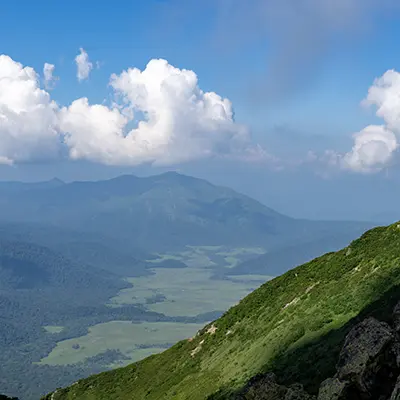 御池からの往復コースで樹林帯、湿原、岩場と景色の変化に富んだルートになっています。広沢田代、熊沢田代の2つの湿原は本当に美しいですよ。