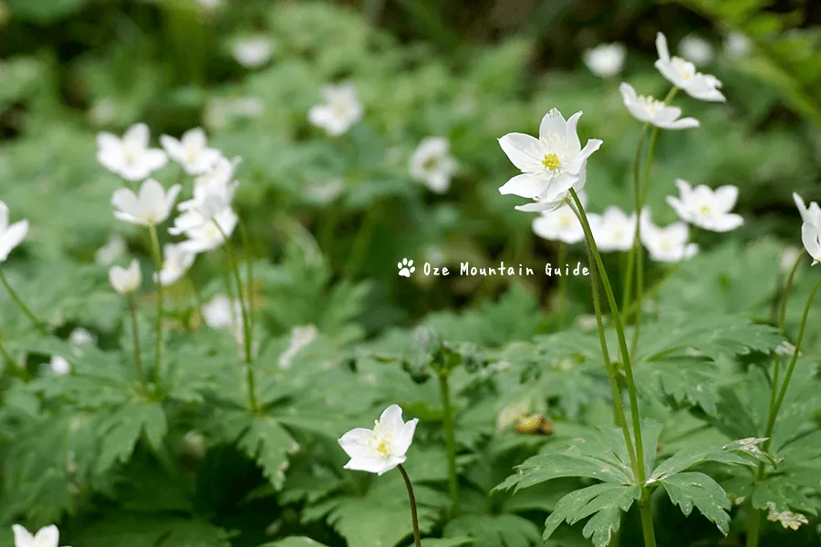 ニリンソウとサンリンソウが仲良く並んでいますので、比較しながら観察できます。