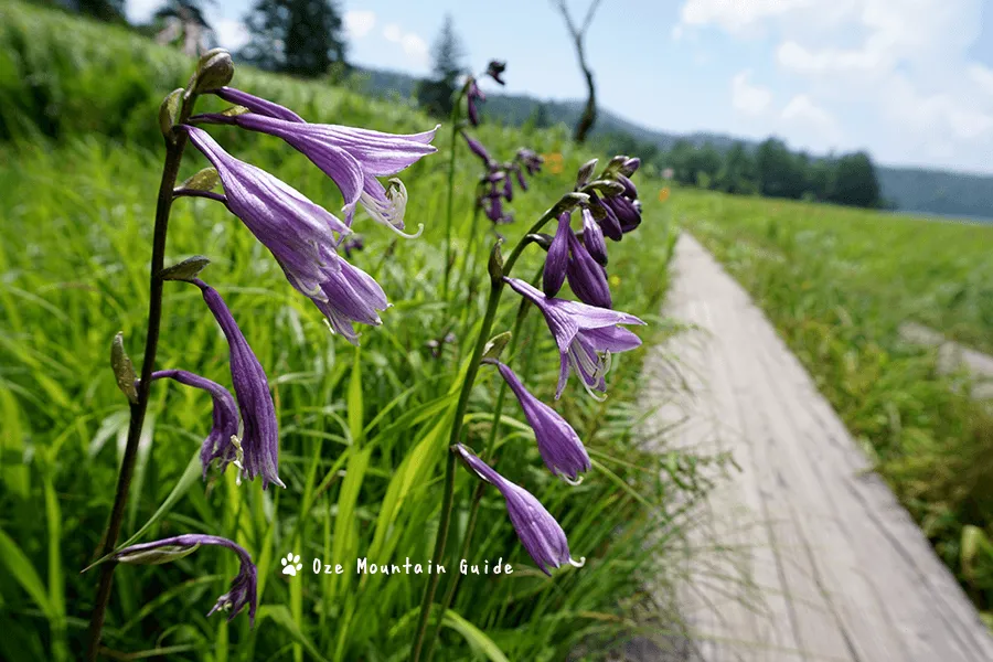 夏の湿原の主役コバギボウシ。紫の花が湿原でとても良く目立ちます。8月の尾瀬に来れば必ず出会える花の一つです。