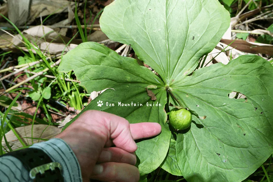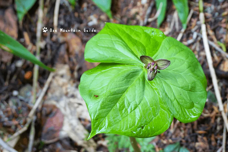 大きな葉を3枚持ち、形が特徴的なエンレイソウ。