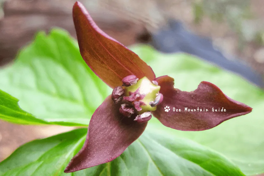 エンレイソウの花はちょっと地味な茶色(紫)です。