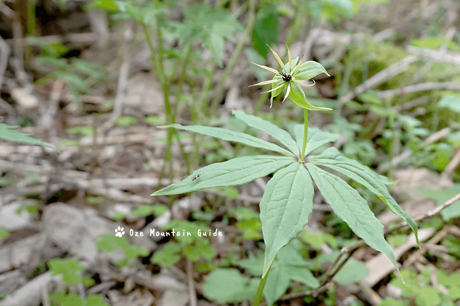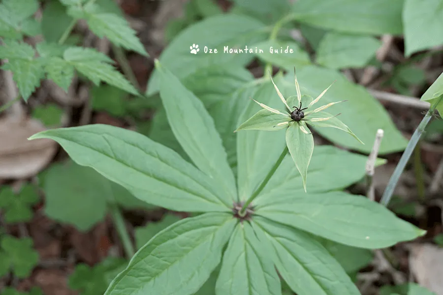 尾瀬の森林内で見かけるクルマバツクバネソウ。