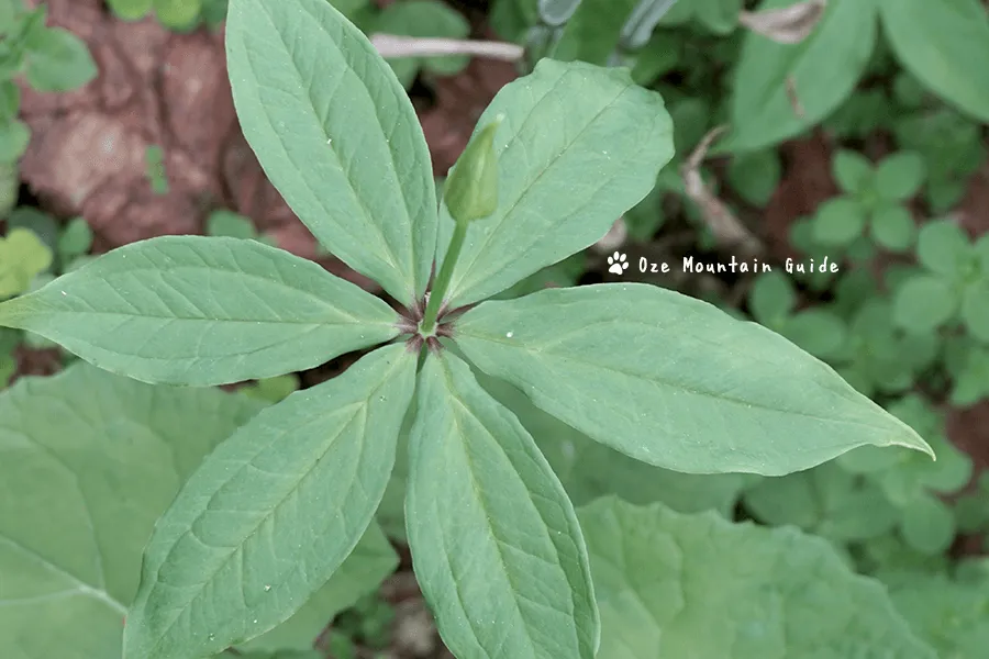 クルマバツクバネソウは葉の数が6~8枚と株によって違ってきます。