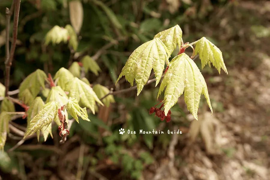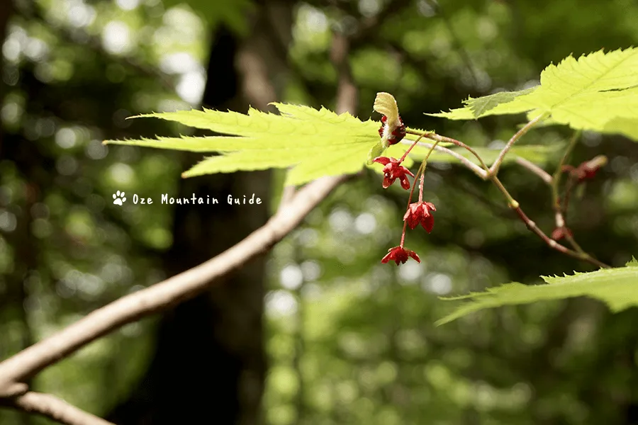 小さな花よりも、ハウチワカエデの特徴的な葉に目がいくと思います。