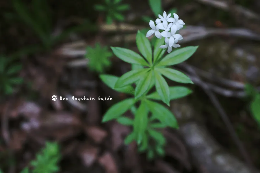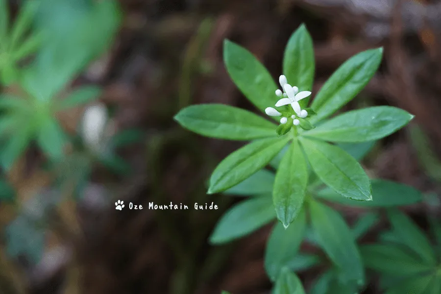 葉のつき方がとても特徴的で、尾瀬の樹林帯で目立つクルマバソウ。