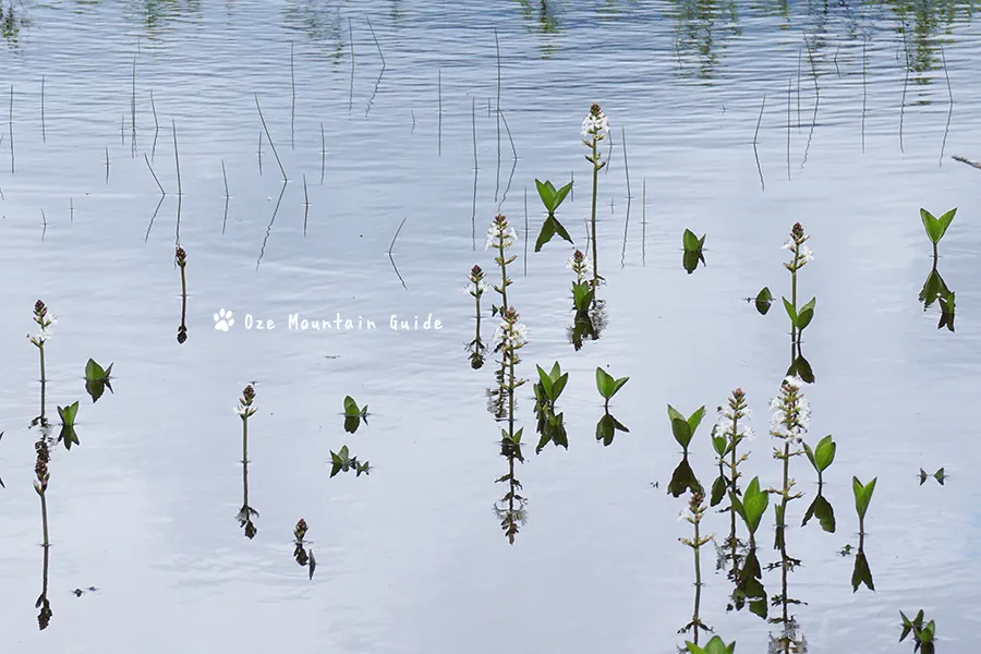 ミツガシワは尾瀬の水気の多い湿原(低層湿原)に多く、比較的簡単に見つけることができます。