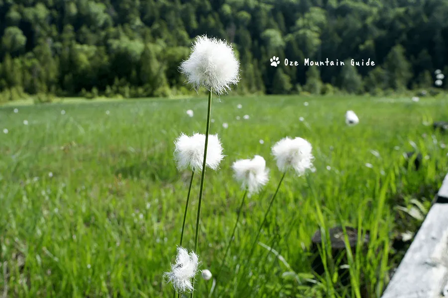 ミズバショウと共に咲くワタスゲもぜひ注目してみてください。