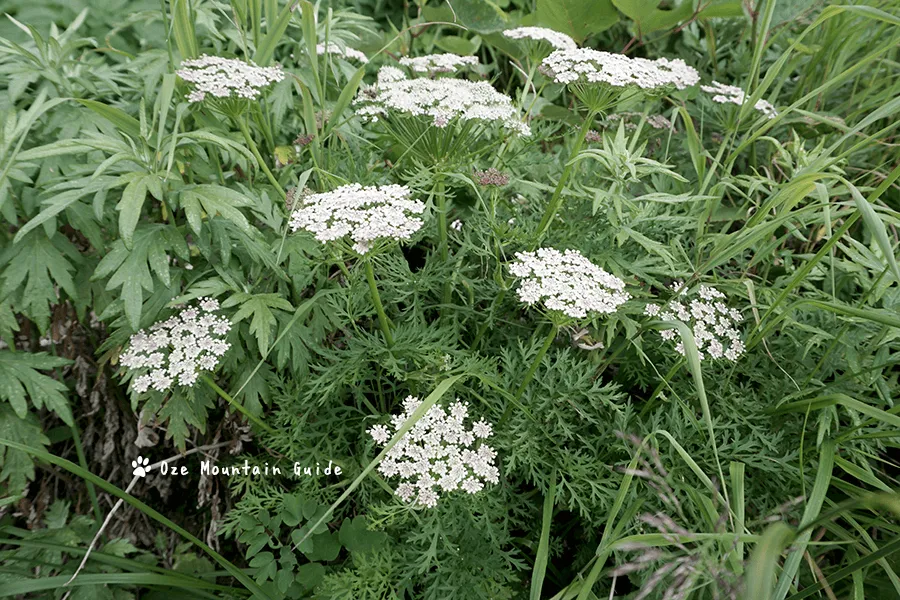 シラネニンジンの花はミヤマウイキョウとよく似ています。