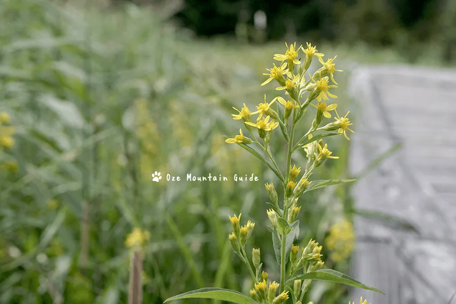 樹林帯にも湿原にも見られる、ミヤマアキノキリンソウ。黄色の花が秋の尾瀬でとてもよく目立ちます。日当たりの良い登山道の脇にもあります。
