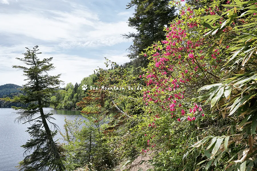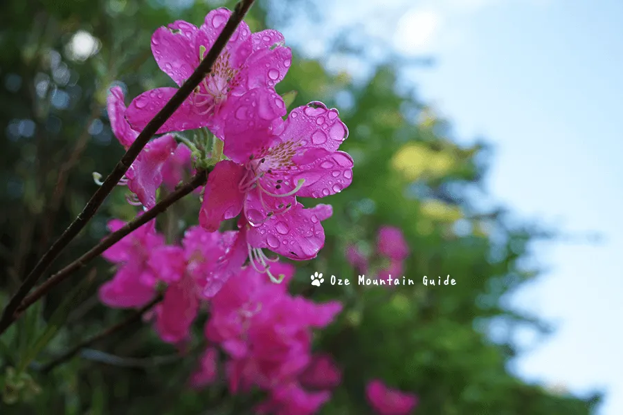 尾瀬で見頃のムラサキヤシオツツジを見つけたらラッキーです。