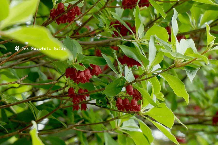 花が白いサラサドウダンもあります。花がない時期の見分けは困難。田代山では両方見ることができます。