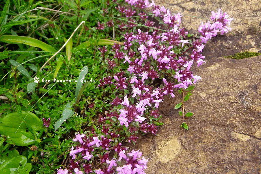 至仏山にピンクのカーペットを作るイブキジャコウソウ。7月至仏山に登れば必ず出会えます。