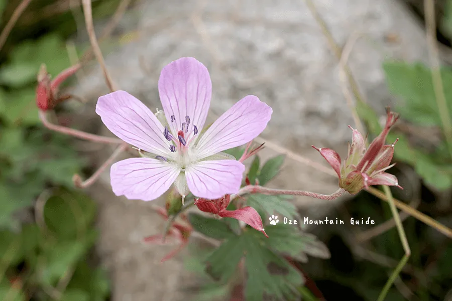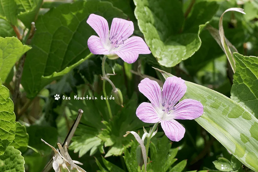 燧ヶ岳や至仏山、会津駒ヶ岳など高所に生えるハクサンフウロ。稜線に薄いピンク色を咲かせ目を楽しませてくれます。