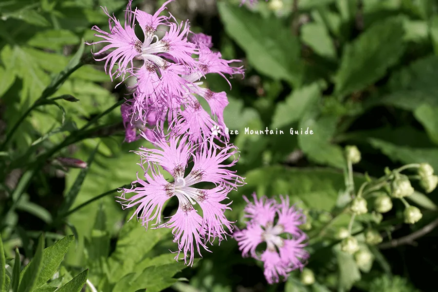 例年7月中旬から下旬が見頃です。お花畑の至仏山でタカネナデシコをお楽しみください。花だけではなく葉の形も変わっていておもしろいですよ。