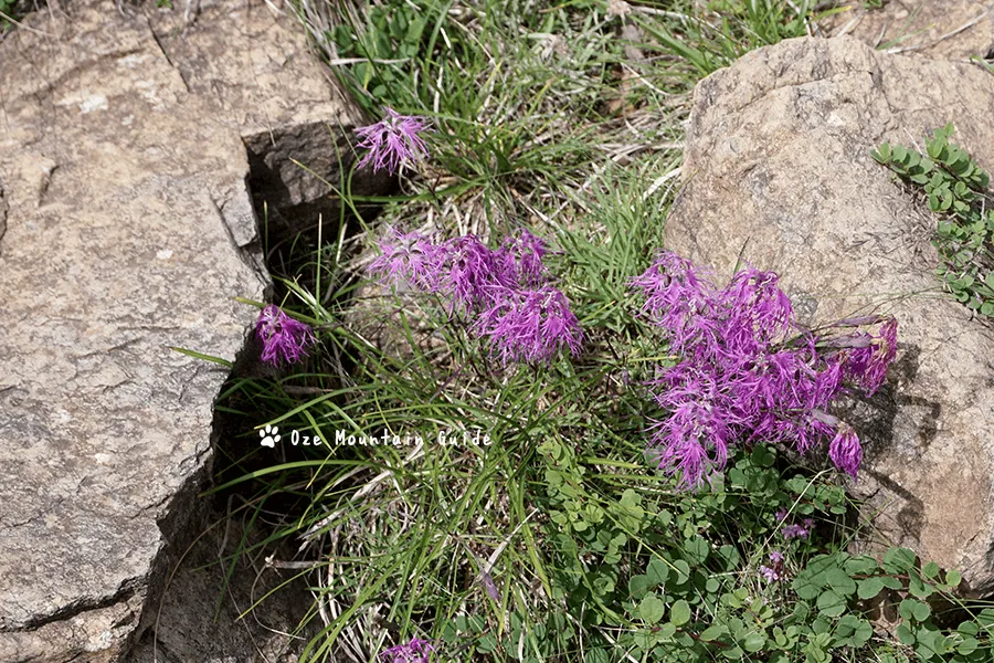 タカネナデシコは至仏山で見ることができます。ナデシコ独特な形ですぐに分かります。カワラナデシコの高山バージョンですね。