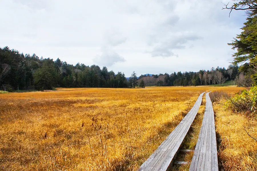 大江湿原は、綺麗な黄金色。