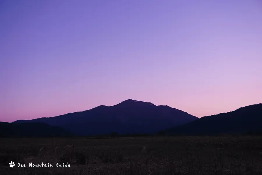 尾瀬ヶ原では至仏山の方向に日が沈んで行くんですね。