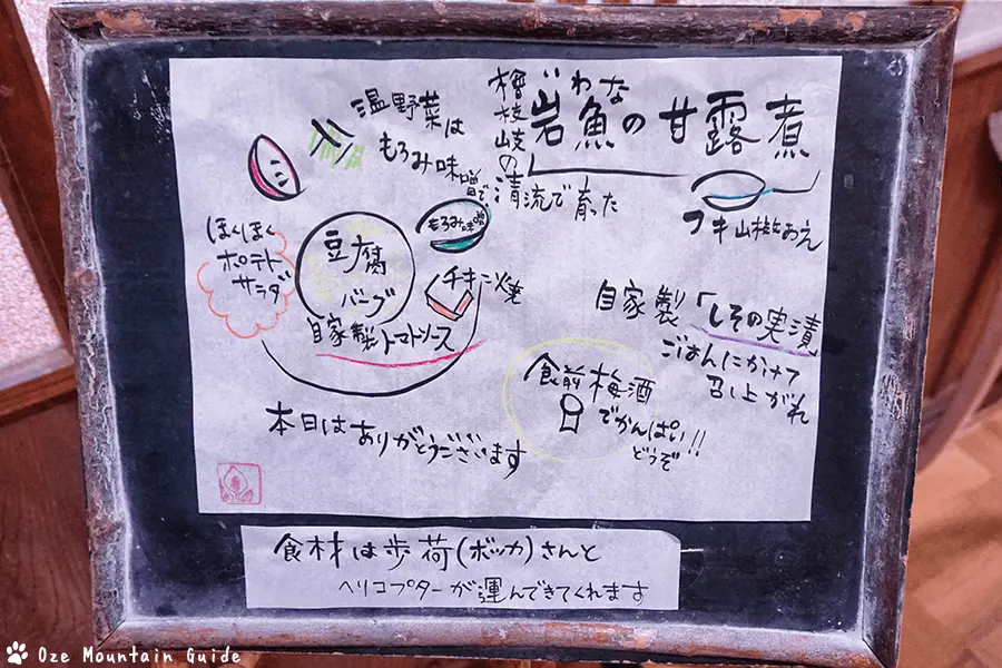 二枚目の写真は本日の献立。山小屋とは思えないほどのボリュームと内容です。