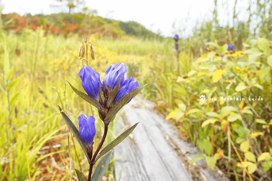尾瀬には『エゾリンドウ』に似ている『オヤマリンドウ』もあります。オヤマリンドウはエゾリンドウより小柄。 エゾリンドウは湿原、オヤマリンドウは樹林帯にあることが多いです。見分けられるとちょと自慢できるかも。 大江湿原から尾瀬沼に入る辺りが花数が多くオススメ。秋の花をお楽しみください。