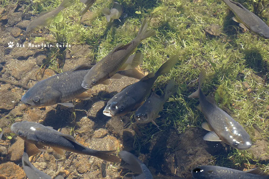 悲しいことに餌をやる人がおり、池の鯉のように人影を見つけると集まってくることも。 餌をあげたくなる気持ちも分かりますが、尾瀬で餌付けは絶対にやってはいけない行為です。 ギンブナの特徴は体が丸っこいのが特徴。尾瀬沼地区で一番よくみかける魚です。