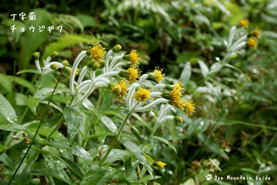 一枚目は妙な形をした花の『チョウジギク』です。尾瀬のどこにでもあるわけではありません。 見晴から赤田代の間が見つけやすいポイント。菊とは思えない形が非常に面白いです。 特徴的な形をしたチョウジギクをぜひ見つけてください。