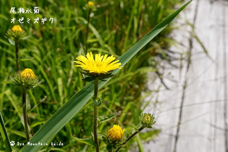 二枚目は何回か紹介した『オゼミズギク』 タンポポではありませんよー。尾瀬の名がつく花です。 ミズギクの変種で尾瀬と磐梯山に生える珍しい花です。