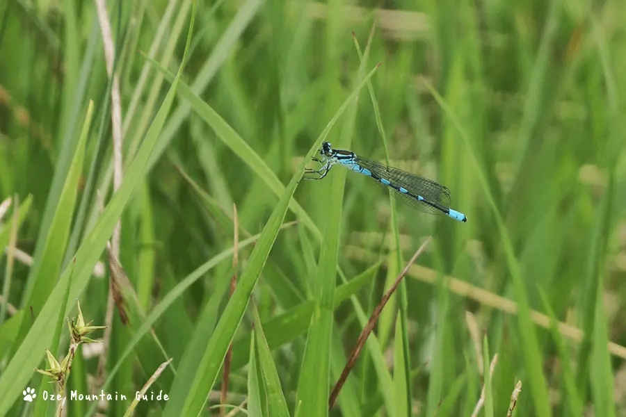 尾瀬ぽっいなと個人的に感じるトンボは、写真のような青色の体の細いイトトンボです。 「オゼイトトンボ」や「ルリイトトンボ」「エゾイトトンボ」「アオイトトンボ」など青いイトトンボは複数種類います。 動きが速くパッと判断するのは非常に難しいです。写真のトンボはなんの種類でしょうか?トンボ博士がいたら教えていただきたいです。