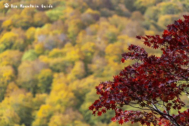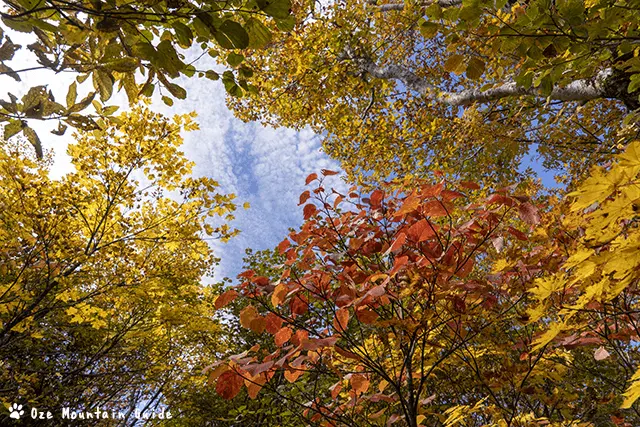 現在は、展望台周辺のカエデ類やオオカメノキ、ウルシなど紅色と橙色が美しいです。広大なブナの森の黄色は今週末くらいが良さそうです。寒さが厳しくなり色が一気に進んできました。